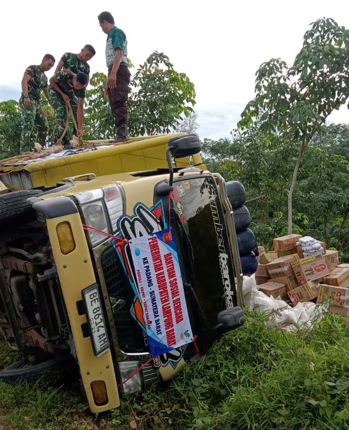 BALIKBUKIT — Proses pengiriman bantuan sembako untuk korban bencana banjir di Sumatera yang berasal dari penggalangan internal SDM Program Keluarga Harapan (PKH) Lampung Barat, yang dikirim dan disalurkan melalui Dinas Sosial sempat mengalami kendala setelah salah satu kendaraan pengangkut logistik mengalami kecelakaan lalu lintas di wilayah Bengkulu Utara.